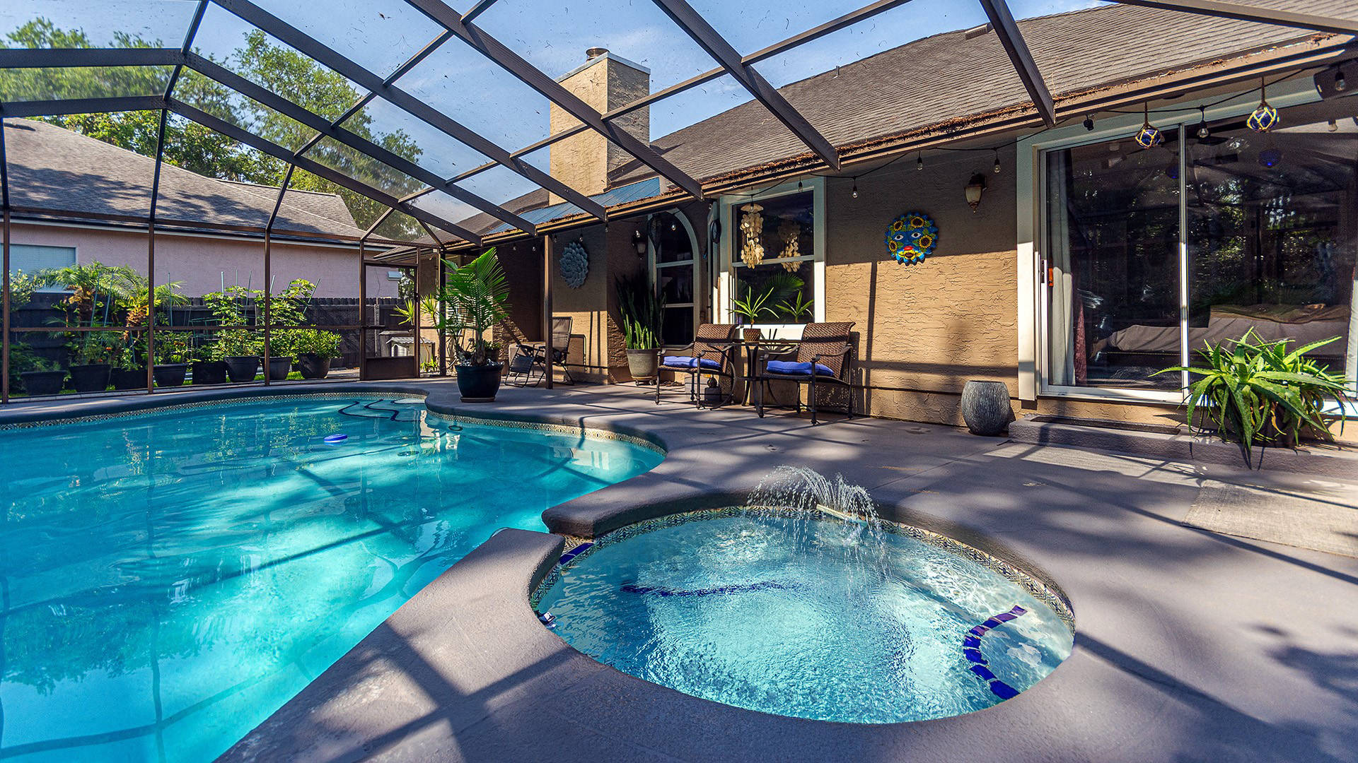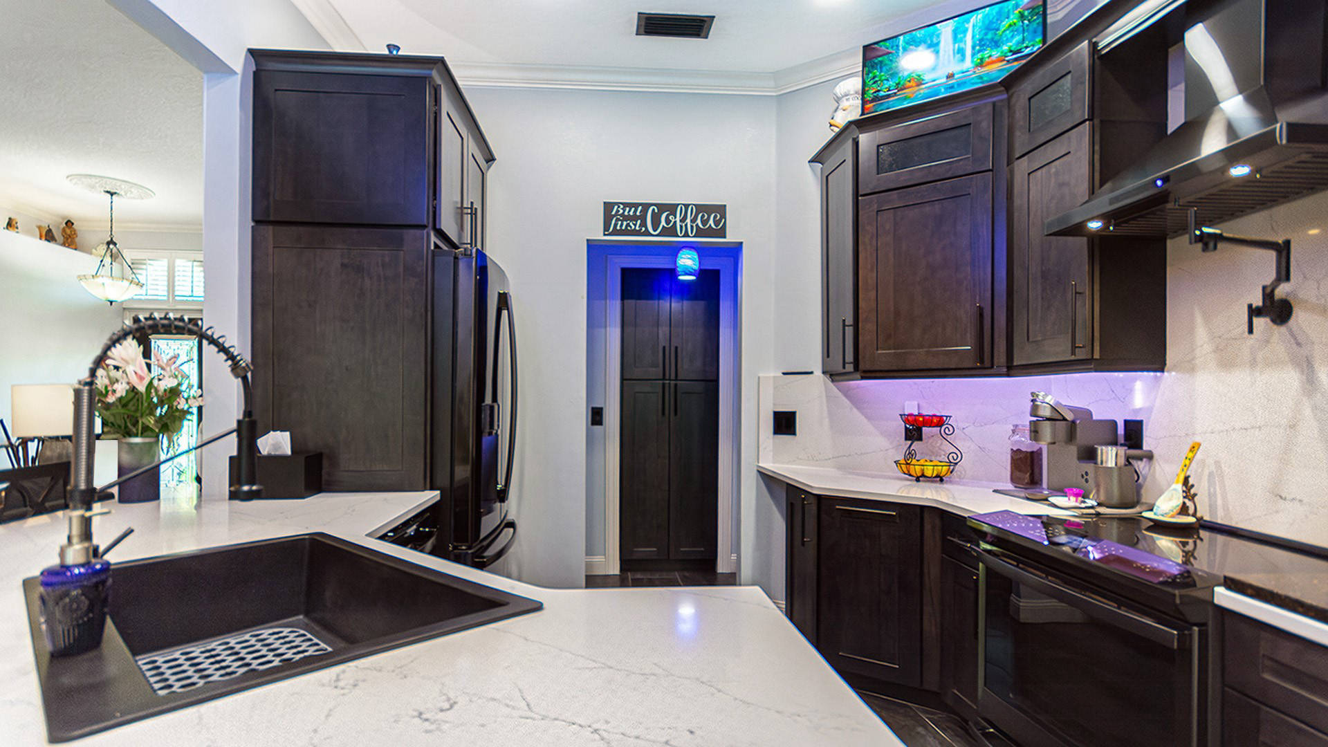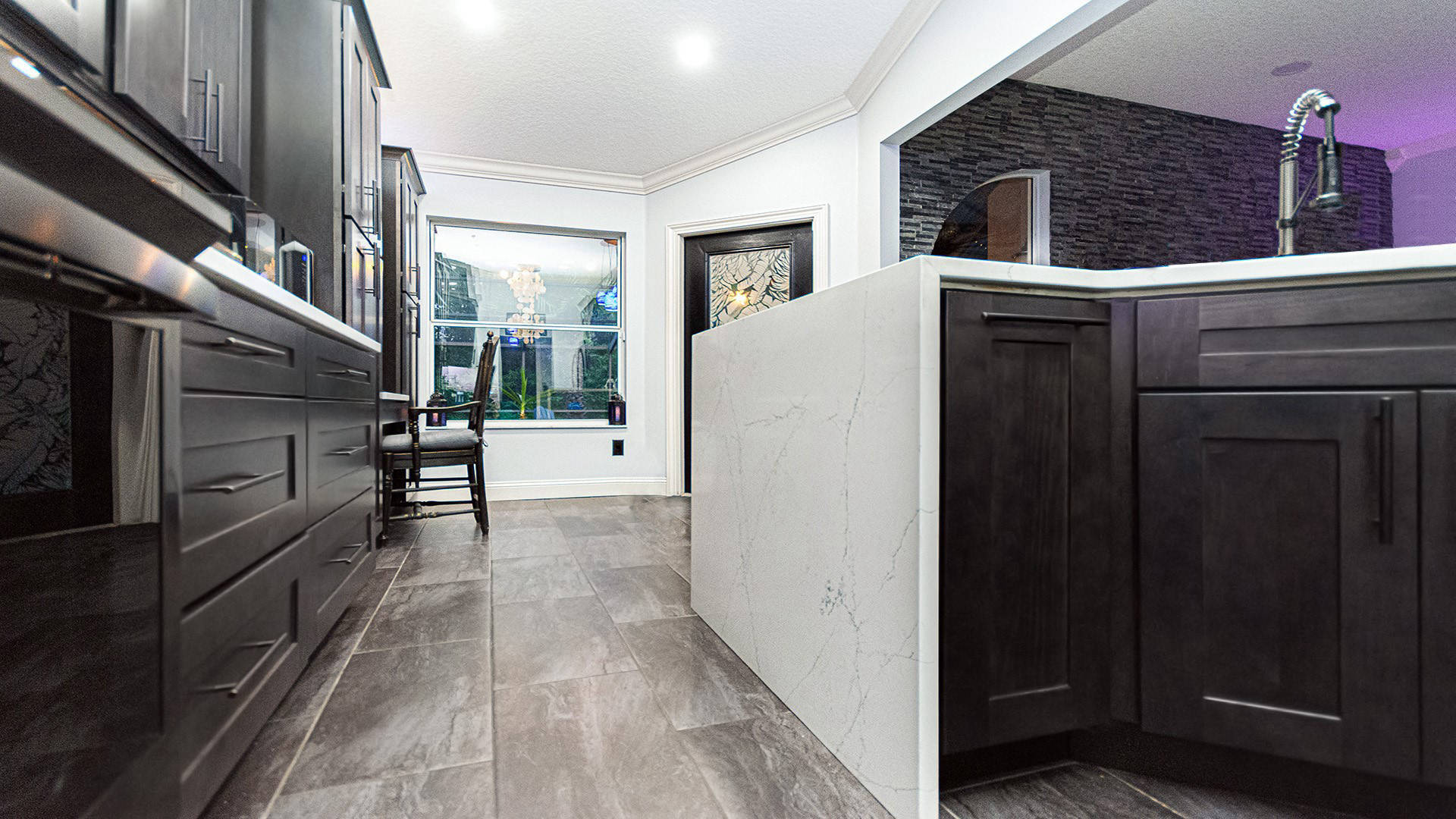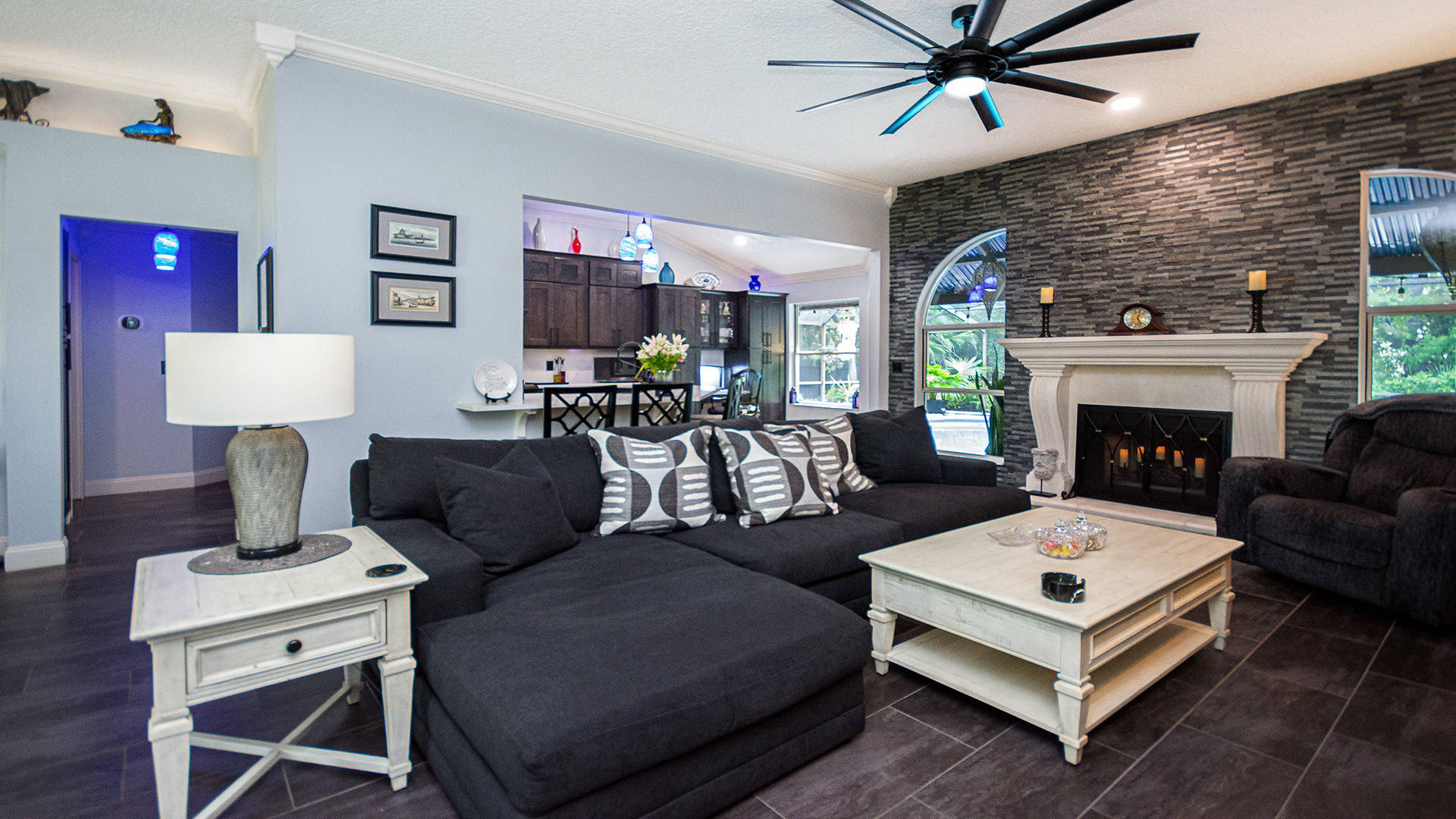 Outstanding Design! Impeccable Decor! Stunning pool home in the gated community of The Woods offers the perfect blend of modern luxury & everyday comfort. Meticulously maintained & remodeled, featuring such high-end finishes as quartz countertops, backsplash & waterfall edge, premium porcelain tile, European stone fireplace, custom cabinetry & built-ins, stack stone fireplace wall, knockdown ceilings, textured walls, recessed lighting, crown moldings & 5'' baseboards.