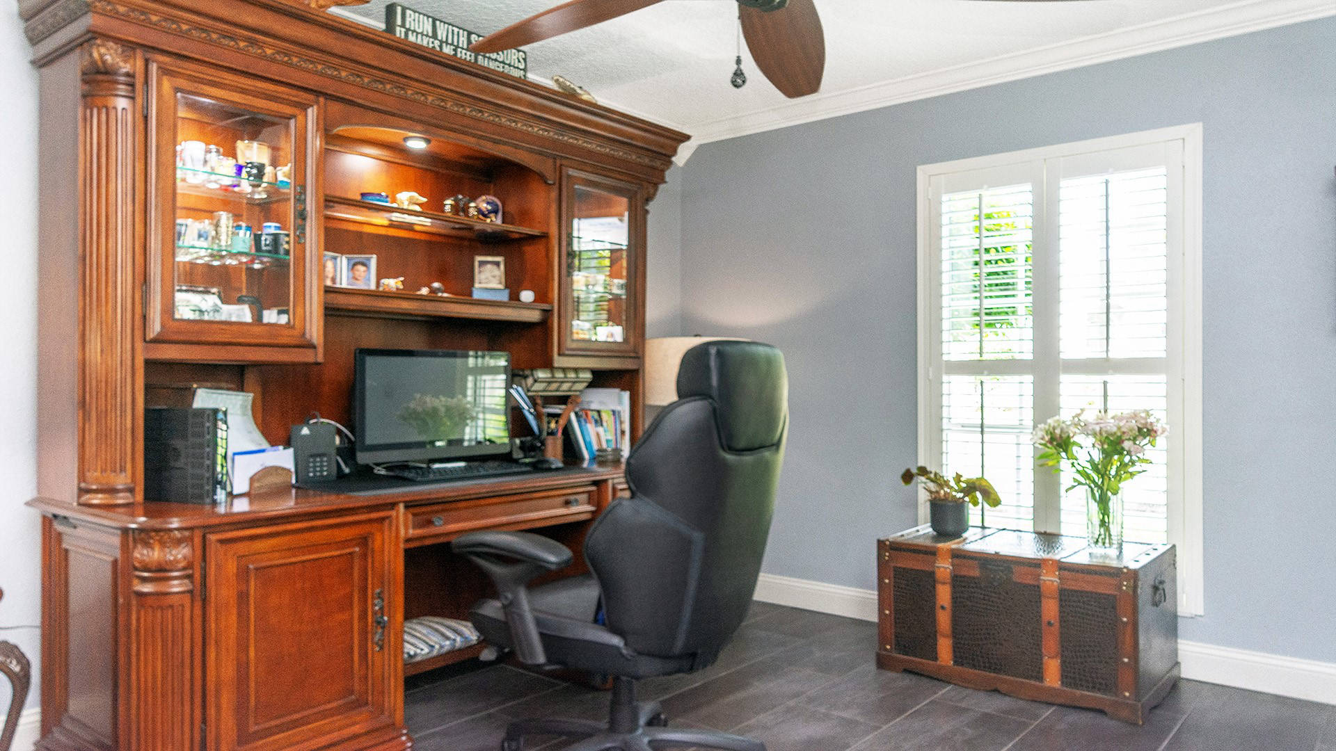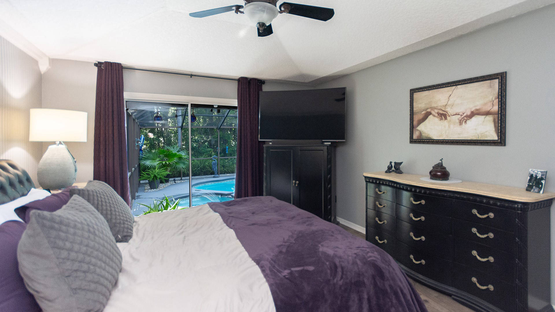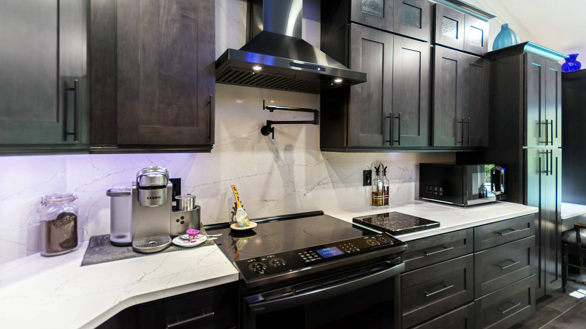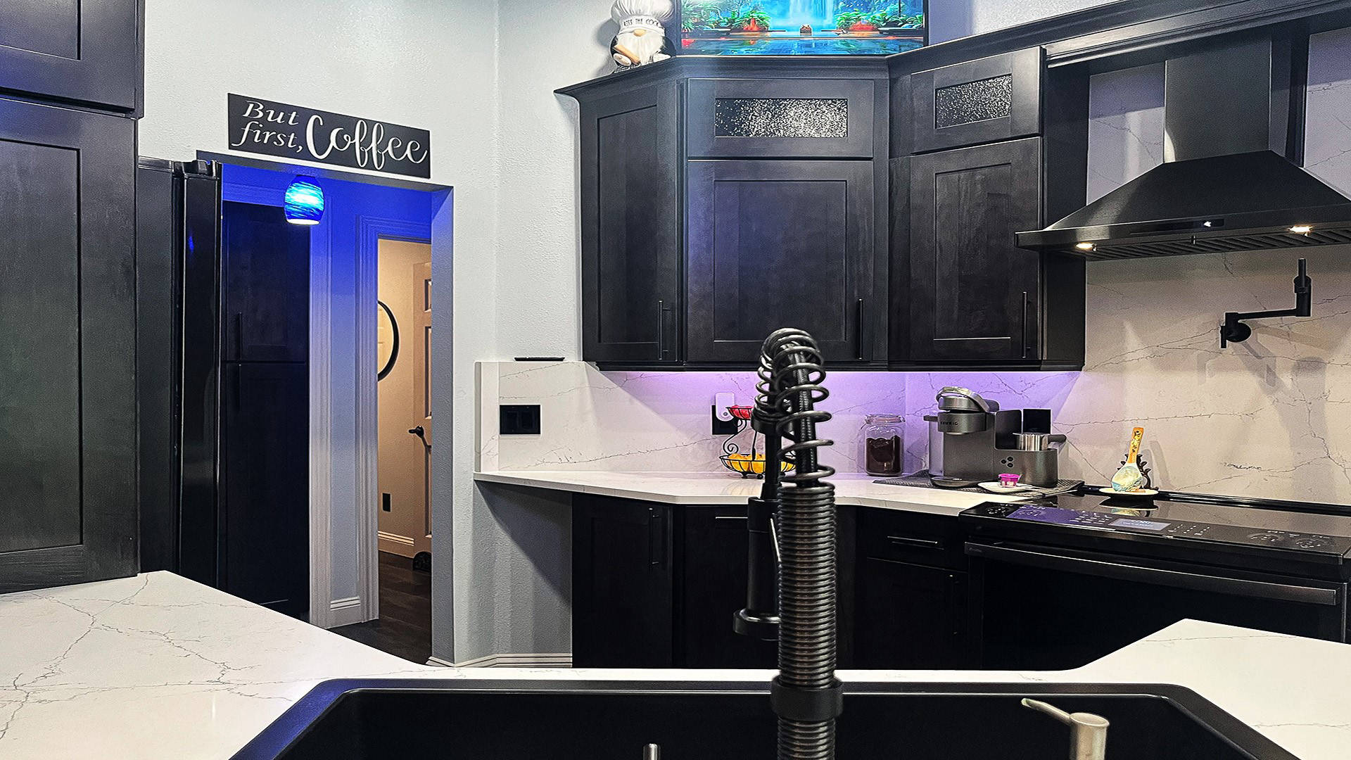 Outstanding Design! Impeccable Decor! Stunning pool home in the gated community of The Woods offers the perfect blend of modern luxury & everyday comfort. Meticulously maintained & remodeled, featuring such high-end finishes as quartz countertops, backsplash & waterfall edge, premium porcelain tile, European stone fireplace, custom cabinetry & built-ins, stack stone fireplace wall, knockdown ceilings, textured walls, recessed lighting, crown moldings & 5'' baseboards.