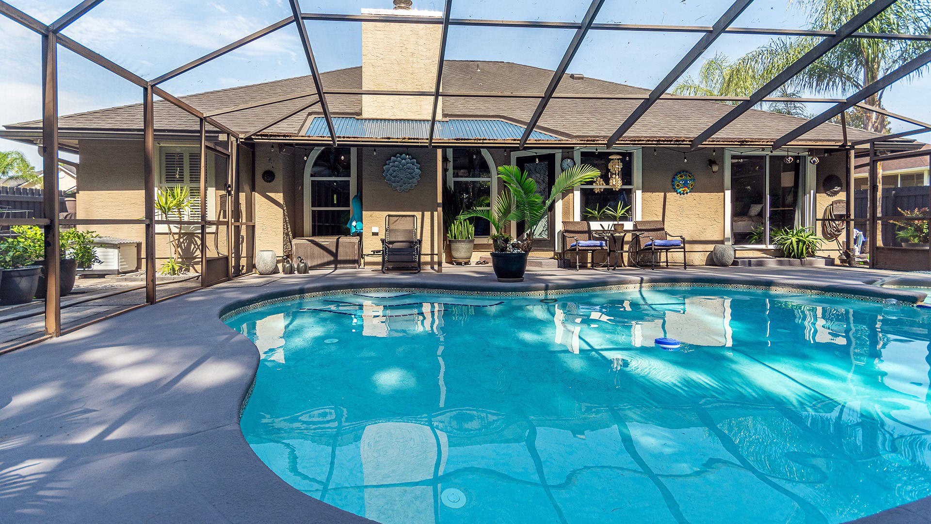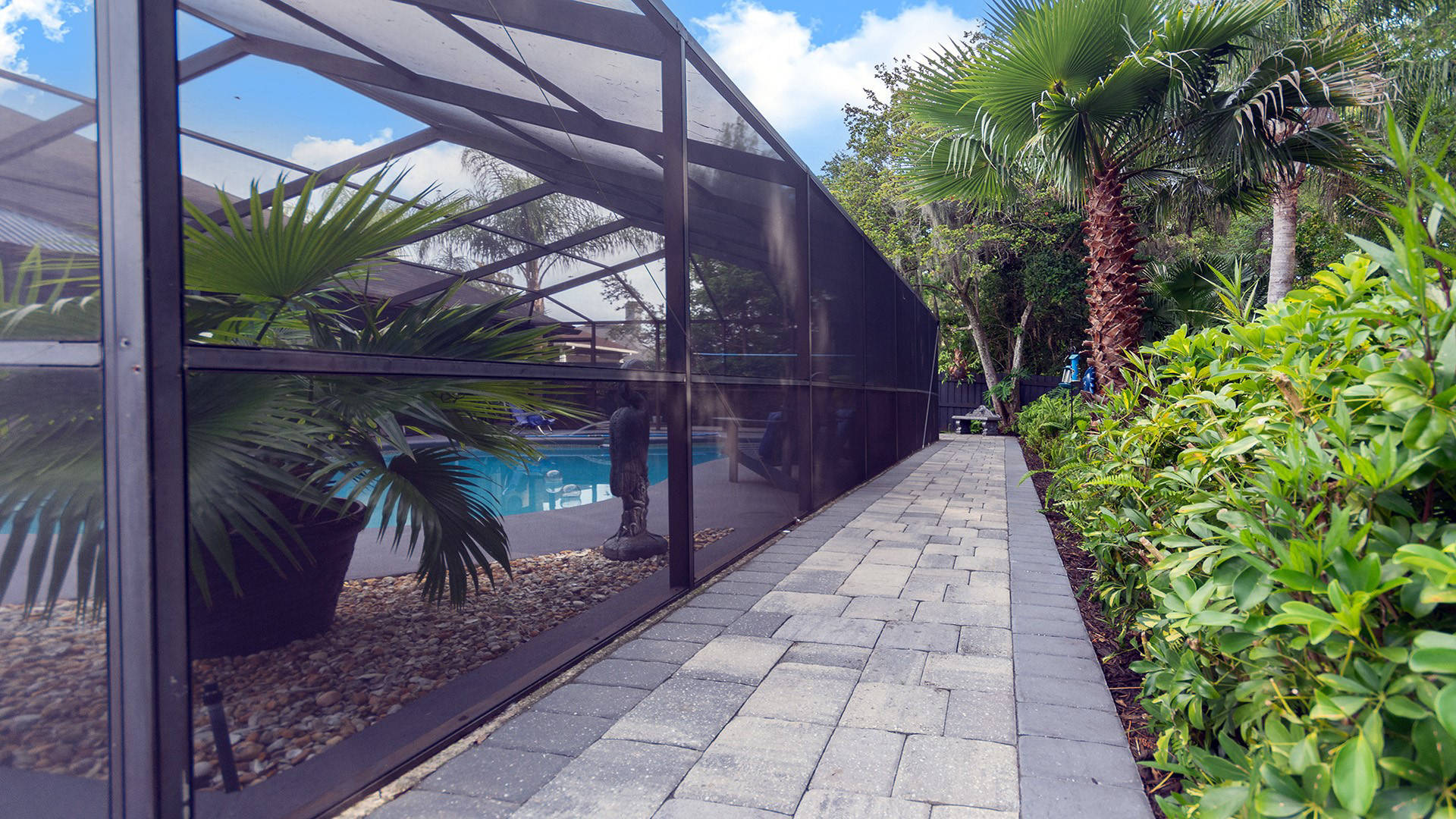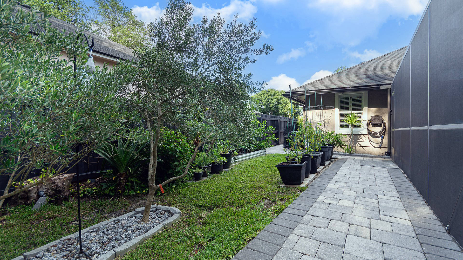Envious Curb Appeal! Home boasts beautiful brick paver drive & walkways. Inviting inground pool & spa is screened & comes w/automatic in-floor cleaning & new LP heater. If you love nature, you will love this lushly landscaped yard which backs to a nature preserve & is adorned w/palms & fruit trees. Upgraded water softener, plumbing & electric panel. Community offers: 2 manned entry gates, Olympic size pool, spring fed lakes, walking trails, pickleball, tennis & much more!
