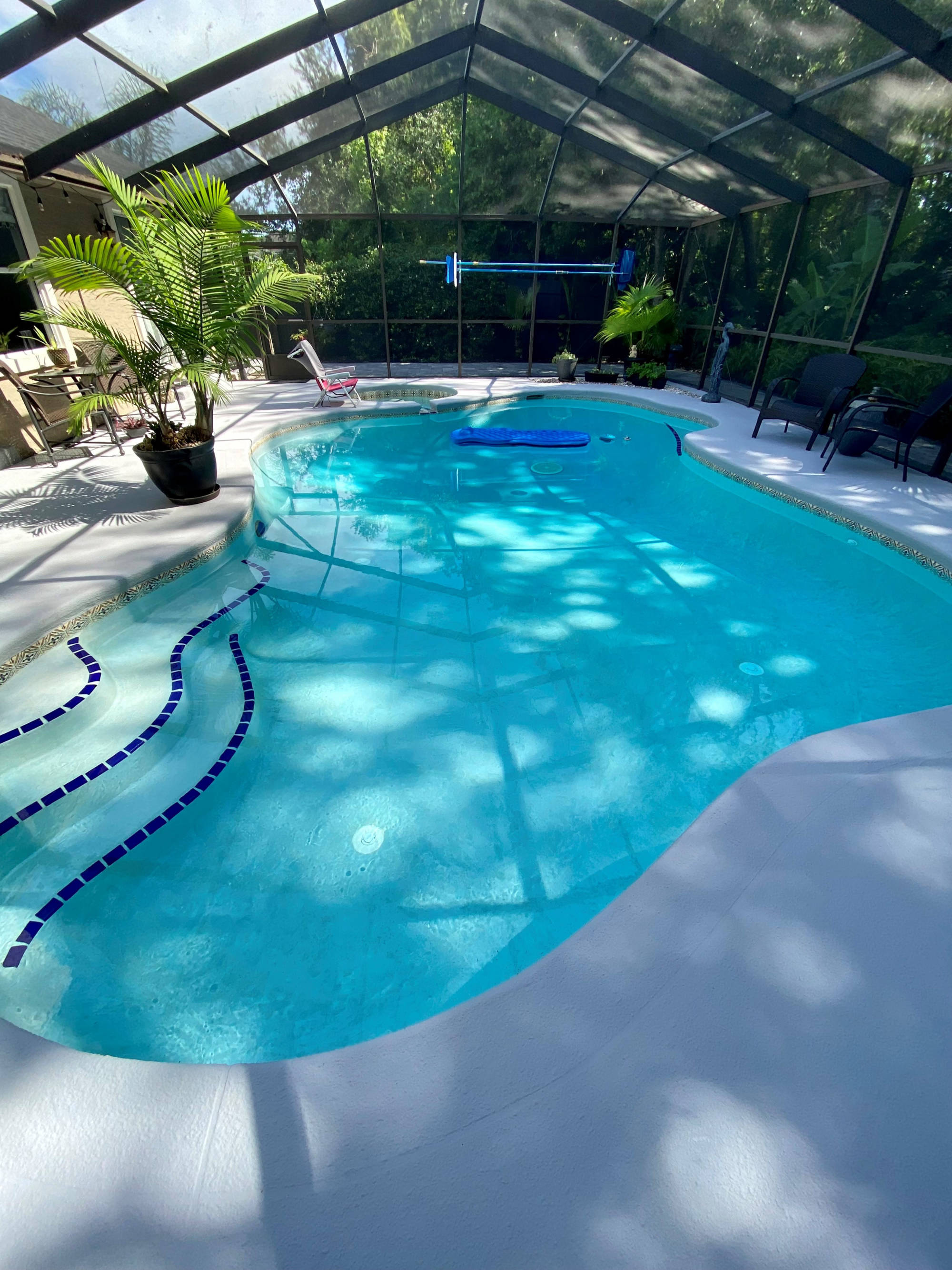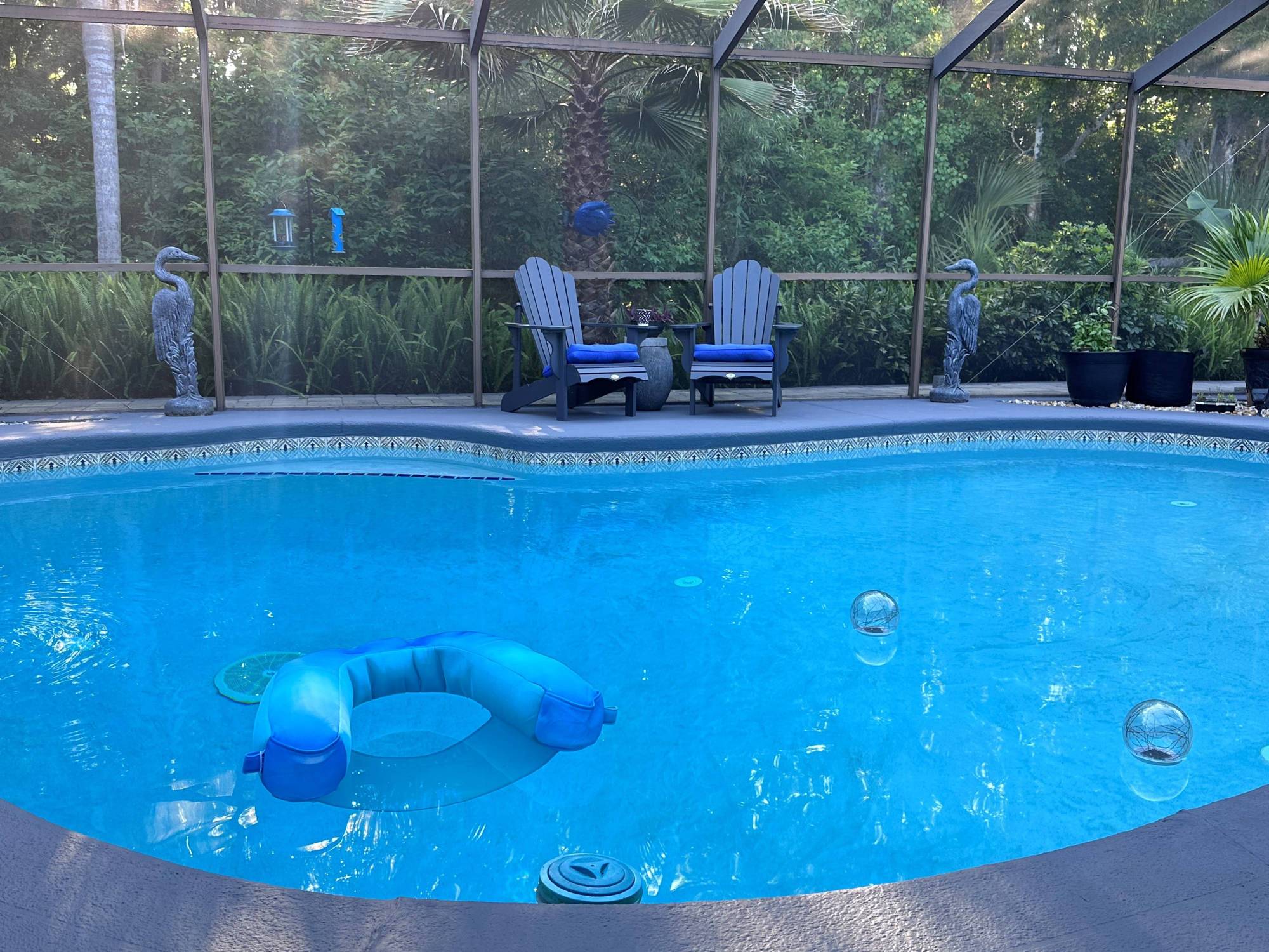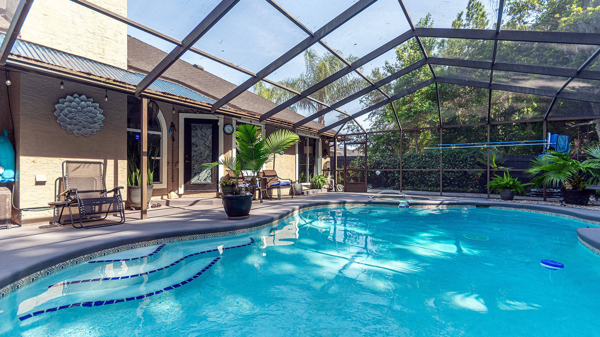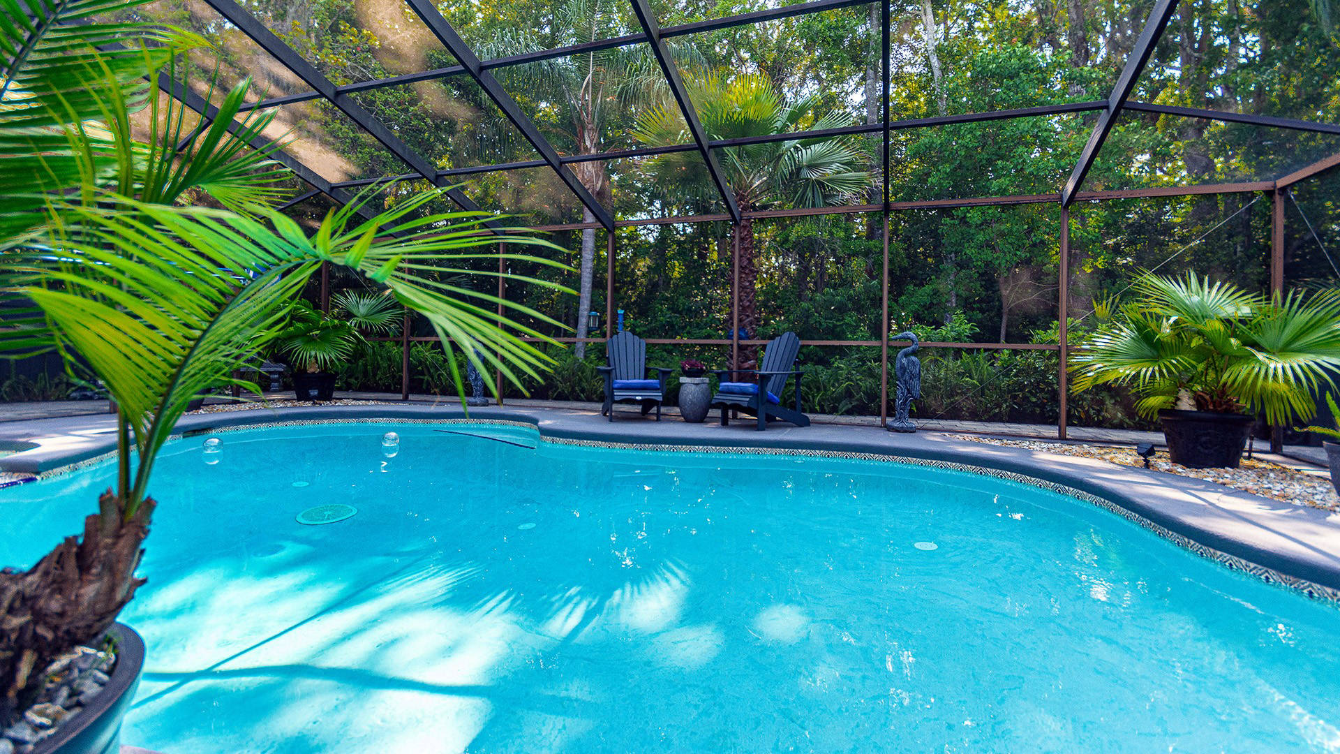 Envious Curb Appeal! Home boasts beautiful brick paver drive & walkways. Inviting inground pool & spa is screened & comes w/automatic in-floor cleaning & new LP heater. If you love nature, you will love this lushly landscaped yard which backs to a nature preserve & is adorned w/palms & fruit trees. Upgraded water softener, plumbing & electric panel. Community offers: 2 manned entry gates, Olympic size pool, spring fed lakes, walking trails, pickleball, tennis & much more!