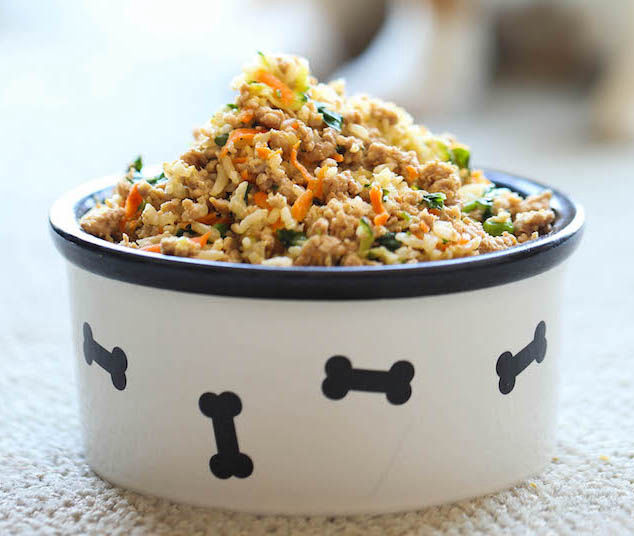 6. Mix vegetables, rice and chicken together. For cats, can blend this mixture for finer texture.